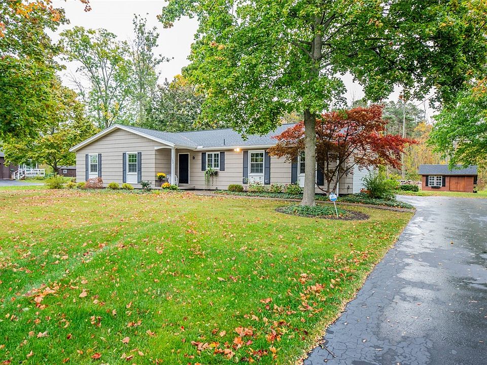 Welcome to your home in Webster, NY, a charming 3-bedroom, 2-bath ranch, perfectly designed for homebuyers seeking a blend of comfort and affordability. Step into the inviting open living and dining area, creating a cozy space for making cherished memories. The kitchen, featuring Corian counters, sliding shelves in oak cabinets and a central island, becomes the hub for your culinary adventures. The primary bedroom, accompanied by a private bath with heated floors, offers a personal retreat within your new abode. Outside, on the .68-acre lot, envision your future in a yard that backs onto a wooded area, providing a touch of nature and a sense of privacy. Hobbyist will delight with this charming shed with electric perfect for any hobby. This property seamlessly marries a country vibe with suburban living.
