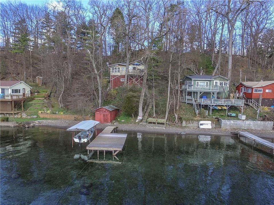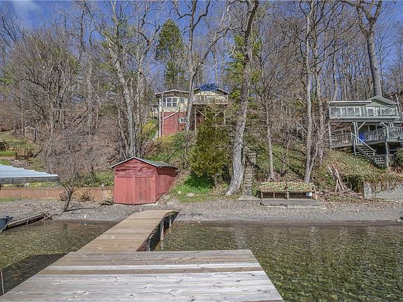 OWN THIS GREAT LITTLE WATERFRONT GETAWAY ON SENECA LAKE-"THE LAKE TROUT CAPITAL OF THE WORLD" AND SOME GREAT FINGER LAKES WINE*HIGHLIGHTS INCLUDE STATE OF THE ART AEROBIC SEPTIC SYSTEM WITH A 1,250 GALL. CONCRETE TANK INSTALLED SEPT 2014 ALONG WITH STONE ADDED TO DRIVEWAY WITH TOTAL COST OF APPROX. $22,000*LOAD ITEMS IN THE DUMBWAITER AT THE TOP OF HILL/DRIVEWAY & LOWER DOWN TO THE COTTAGE*ALMOST COMPLETELY FURNISHED TURN-KEY RIGHT DOWN TO THE SILVERWARE, DISHWARE AND MORE*NEW DOCK*1 YR NEW PUMP HOUSE MOTOR & 120 FEET OF PIPE GOING OUT INTO THE LAKE FOR WATER SUPPLY*ROOF APPROX. 16 YRS.*HEAT SOURCE FROM A NEWER PROPANE WALL FURNACE*NICE RUSTIC KNOTTY PINE FEEL INSIDE*WOODSTOVE ADDS ADDTL. HEAT*NICE VIEWS FROM YOUR DECK*ALUM.SIDED*2 BDRMS.-PREVIOUS ENCLOSED PORCH USED AS 2ND BDRM.*51 STEPS FROM DRIVEWAY TO COTTAGE*45 STEPS COTTAGE TO WATER*GREAT EXERCISE!!!