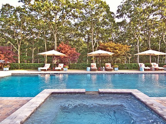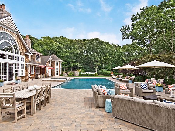 Rental Registration #: RP250976 Freshly Painted Interiors, Upgraded Furniture and Finishes just completed for Summer 2024! This gated, 10,000 square foot new listing on 5 acres is the perfect Southampton retreat. The home feels like a true "estate," on a private cul-de-sac of high-end homes, well off the main road. The interior is grand, with 5500 square feet of 2-story living space, all on one level, plus an additional 4500 square feet of finished lower level with every amenity. The spacious home offers a 2-story foyer and 2-story living room, with 20' wall of glass as your first impression. There is plenty of room to spread out, with a large eat-in kitchen overlooking the yard, formal dining, and enormous family room with fireplace. A grand master suite and 3 additional ensuite bedrooms (one with sofabed) round out the first floor. Given the enormous footprint above, the downstairs affords tremendous living as well. There are two additional guest bedrooms, 2 full baths, theater, gym and game/recreation room. The gated grounds are simply magnificent--gorgeously manicured, with expansive lawn area. The focal point is a 60 x 30 show-stopper pool, surrounded by massive patio and gardens on all sides. An outdoor kitchen with barstools just outside the kitchen door is perfect entertaining. There is ample outdoor furniture for lounging and outdoor dining. The location is convenient, about a mile to perhaps the Hamptons prettiest sandy bay beach, Towd Point, 4 miles to Southampton or Water Mill Villages, and 5.5 miles to a dozen ocean beaches. Its also near the Southampton Community Center, which offers Tennis, Yoga, Basketball and an indoor track.