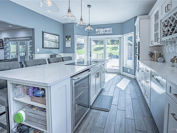 Warm & inviting two story home along the Niagara Escarpment set back from the road w/sweeping views of Niagara Cty wine country. Best views on Ridge Rd! Updates include new kitchen w/quartz countertops & backsplash, new farm style sink, induction cooktop, ceramic tile flr & center island; new primary retreat ensuite bath w/walk-in shower & soaking tub, new primary retreat floors, new guest bath on 1st flr, new full bath on 2nd flr, freshly painted throughout most of the home. Lrg windows & skylights provide bright & cheery indoor setting. Not to mention formal dining rm w/separate entrance - could make for a great home office! Primary suite & LR share two-sided gas frplc. Full partially finished basement, huge deck spanning across the entire rear of the house overlooking private yard, wooded escarpment, & inground pool! 2.5 car attached & 1 car detached 10x12 garage/shed. Most recent updates include complete tear off roof 5/22, high efficiency furnace, CA, Anderson Windows, California closet systems, additional home insulation, completed 8/22. 3 new exterior doors 7/23. Sq footage is based on professional measurements & includes finished family room in basement.
