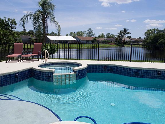 PERFECT WELLINGTON WATERFRONT POOL HOME ON CUL DE SAC STREET WITH LOVELY PARK, SHOPPING & GREAT SCHOOLS NEARBY. 1/4 ACRE LOT & NO HOA! VERY OPEN GREAT ROOM, LARGE SCREENED PATIO, HEATED POOL & SPA. 4 BEDROOMS & 2 AND 1/2 BATHS. STRANDED BAMBOO FLOORING IN LIVING AREAS, GRANITE & STAINLESS STEEL KITCHEN, BEAUTIFUL NEWLY REMODELED BATHS. NEW POOL HEATER. OVERSIZED GARAGE. WHOLE HOUSE EXTERIOR PAINTED 1 YEAR AGO, 2020 ROOF & SKYLIGHTS, ALL NEW EXTERIOR LIGHTING. FENCED YARD. ENJOY COFFEE & SUNRISES FROM YOUR SCREENED PATIO, THE STARS AT NIGHT FROM YOUR HOT TUB AND FISHING FOR BASS OR WATCHING OTTERS, PELICANS, HERONS & DUCKS FROM YOUR BACKYARD.