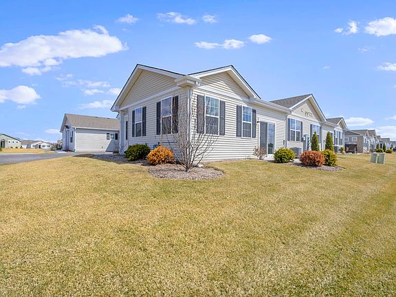 Final opportunity for a new build of the popular Elliot plan - move-in ready! Our Elliot ranch plan features an open concept living plan with 9'8 ceilings, 2 bedrooms, 2 full baths, and a large 2-car garage. The kitchen features designer white 42" cabinets with crown molding, a convenient pantry, stainless steel appliances, and a generous peninsula island overlooking the breakfast area and gathering room. The primary bedroom boasts a large walk-in closet and plenty of room for your furnishings. Dual bowl-raised vanity and linen closet in your primary bathroom. Professionally landscaped end unit home. Join the fun in our exemplary lifestyle community including a clubhouse, indoor and outdoor pools, jacuzzi, fitness center, walking trails executive golf course and so much more. All Chicago homes include our America's Smart Home Technology which allows you to monitor and control your home from the comfort of your sofa or from 500 miles away and connects to your home with your smartphone, tablet or computer. Home life can be hands-free. It's never been easier to settle into new routine. Set the scene with your voice, from your phone, through the Qolsys panel which you can schedule it and forget it. Your home will always await you with your personalized settings. Our priority is to make sure you have the right smart home system to grow with you. Our homes speak to Bluetooth, Wi-Fi, Z-Wave and cellular devices so you can sync with almost any smart device. Builder Warranty 1-2-10. Exterior/interior photos of similar home and model home, actual home as built may vary.