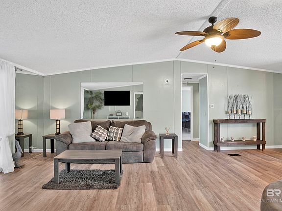 Spanish Cove located in Lillian, AL. Along the shores of Perdido Bay and the Florida line. This 3/2 bath split bedroom home backs to 12 acres of Association owned land means more privacy with the woods behind you. Primary bedroom features ensuite with garden tub, separate shower, and walk in closet. Kitchen has breakfast area in the foyer and nice size pantry. Home just had a new HVAC system end of January 2025. In 2019 new flooring, plumbing, roof, gutter guard system. If you love light and sunshine, you'll love the 12.5x30 sunroom with heat and air. Also, a 12x12 screened room. This property has plenty of room on an oversized lot. Carport with attached storage room with electricity. Two driveways, so plenty of room for parking and any extra toys. Call your Realtor today. This home is priced to Sell, don't miss out! Spanish cove amenities include pool, fishing pier, beach, 2 clubhouses, tennis courts, walking trail, and countless activities. Also known as the golf cart community. On the Florida side, 15 minutes to the beach. Orange Beach is about 30 minutes. OWA theme park, shopping, dining and Tanger Outlet 20-minutes. Call your Agent today, home is priced to SELL! Buyer to verify all information during due diligence.