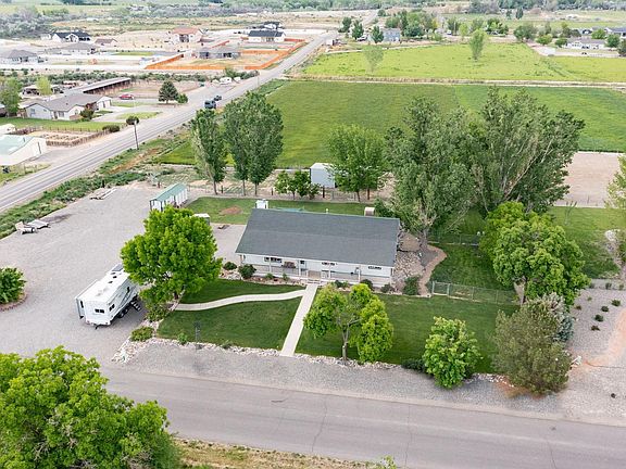 This is your opportunity to own country living at its finest yet, close in! This beautifully maintained “Hobby Farm” is a 2704 sf ranch with basement walkout located on approximately 4 irrigated acres in Fruita. The views from this property are enchanting. On the main level, this home has a large open concept living area, vaulted ceiling, 3 bedrooms and 2-full baths, kitchen, dining, laundry, and deck. The lower walkout contains the 4th bedroom, ¾ bath, and large entertainment area currently set up as a theater room but could easily become a mother-in-law retreat with its separate entrance and division between the main living area and the walkout. Outside you will find a fenced dog run and lush lawn area, mature trees, flowers and shrubs, 2 sheds, horse barn and corral which includes water and power. Plenty of room for your RV and toys. Approximately 3 acres are in grass/hay with 4 shares of irrigation water included.