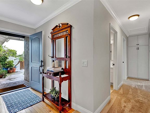 Pristine, Meticulously Maintained 5 Bedroom, 3 Bath Home with 2 Primary Suites (1 Up & 1 Down) Boasts 1875 Square Feet of Living Space and is Situated on an Oversized 7600 Square Foot Lot. This Gorgeous Home is Beautifully Appointed Throughout and Features Numerous Fine-Finish Upgrades, Including: Dual Pane Windows & Sliders, Custom Drapes, Custom Blinds, LED Recessed Lighting in Every Room, High Baseboards, Extensive Crown Molding Throughout, Custom Casements Around Windows & Doors, Raised Panel Solid-Wood Interior Doors, Bead Board & Shiplap Wainscoting, Designer Paint, Top-of-the-line Rinnai Tankless Water Heater, and More! As you Approach this Lovely Home You will be Impressed by it's Beauty with a Lush Front Lawn, Paver Accented Extra Wide Driveway (Can Park RV), Stacked Stone Siding, and a White Block Wall that Encloses the Beautiful Front Courtyard Patio and Wrap-Around Lawn - Your Own Private Park-Like Sanctuary w/Multiple Fruit Trees (Peach, Nectarine, Lemon, Mandarin Orange, Avocado, Blackberries). Step Inside to the Foyer with Rich Hardwood Flooring that Extends Throughout the Remodeled Kitchen that's the "Heart" of the Home with the Adjoining Banquet-Sized Dining Room. The Kitchen Features Granite Countertops, White Subway Tile Backsplash, a Wrap-Around Low Seating Breakfast Bar, White Shaker Cabinetry, Two Large Pantries, Gas Cooktop and Double Ovens. There is an Inside Laundry Room Conveniently Located Just Off the Kitchen. The Elegant Living Room has a White Brick Fireplace with Custom Wood Mantel and Slider that Opens to the Backyard with Covered Patio. The Downstairs Primary Suite has a Slider that Opens to the Grassy Courtyard. Both Downstairs Bathrooms have Tile Flooring, Countertops, and Surrounds with Clear Glass Enclosures. Upstairs there are 2 More Bedrooms Including a Spacious Primary with an Ensuite Bathroom Upgraded in a Chic Black & White Motif. This Superb Home is Located in Highly Desired Neighborhood Close to Shopping, Dining, and Award-Winning Schools (Walking Distance to Fountain Valley High) and Just a Short Drive to the Beach.