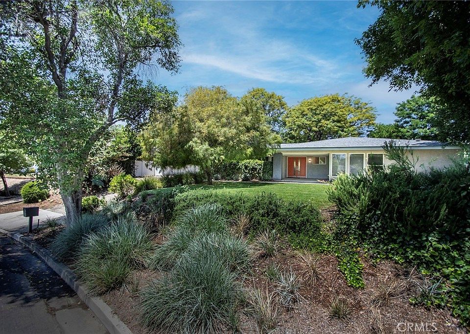 Stunning Mid-Century Modern Gem in a Pristine Neighborhood on a beautiful tree-lined street in an established, centrally located neighborhood adjacent to Sherwood Forest. This unique mid-century modern masterpiece exudes charm & character, offering a truly one-of-a-kind living experience. As you approach the house, you'll be captivated by its lovely curb appeal, highlighted by lush landscaping & a spacious open front porch. The striking orange double front doors set the tone for the exceptional interior that awaits. Step inside to discover rich luxury vinyl flooring throughout & a tasteful array of modern furnishings that immediately catch the eye. The expansive living room, complete with a cozy fireplace, seamlessly flows into the large dining room, which overlooks the serene backyard. The chic kitchen, overlooking the dining nook & spacious family room, is perfect for both everyday living & entertaining. On one side of the house, you'll find all generous bedrooms, each located at the back for maximum privacy, sharing a well-appointed hall bathroom. The primary bedroom, situated towards the front of the home, features an en suite bathroom, large walk-in closet, & a view of a tranquil fountain garden area. Indulge in the luxurious Roman tub for a spa-like retreat. The backyard is a true oasis, boasting large honey locust trees, a variety of fruit trees including apple espalier, plum, peach, orange, fig, avocado, guava, & mulberry, & a dedicated side area for a vegetable garden. This outdoor haven is perfect for hosting large parties, weddings, & children fun. Additional features include pavers on the front driveway, a side yard to store outdoor toys/storage, & ample space for a boat or other outdoor toys. With a single-story layout, this spacious home is designed for family-friendly living. Recent updates include a 7-year-old roof, a 5-year-old HVAC system, & the replacement of two main sewer lines, ensuring peace of mind for years to come. The home's modern vibe perfectly complements its classic mid-century design. Don't miss the opportunity to own this extraordinary home in a walkable neighborhood, close to excellent schools & all the conveniences you could desire. Experience the soul & uniqueness of this mid-century modern treasure today! Embrace the quintessential California lifestyle, reminiscent of the golden era of the 1950s and 60s, where indoor-outdoor living and architectural innovation set the standard for relaxed elegance and timeless style.