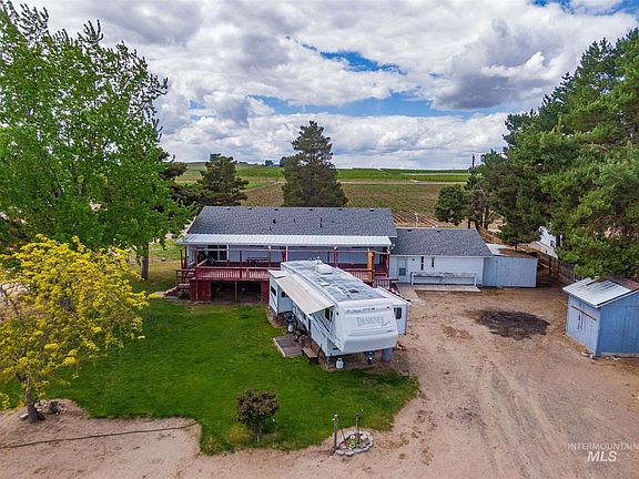 Beautiful country location! New roof on this 5 bedroom, 3 bath 3,000 sq. ft. home with 2 pellet stoves and deck. 1.5 acres with a metal roofed 55' x 67' shop with rec room, furnace and 13.5 ' x 67' attached overhang - perfect site for a business. Mature landscaping, outbuildings, RV parking, garden space and garage storage.