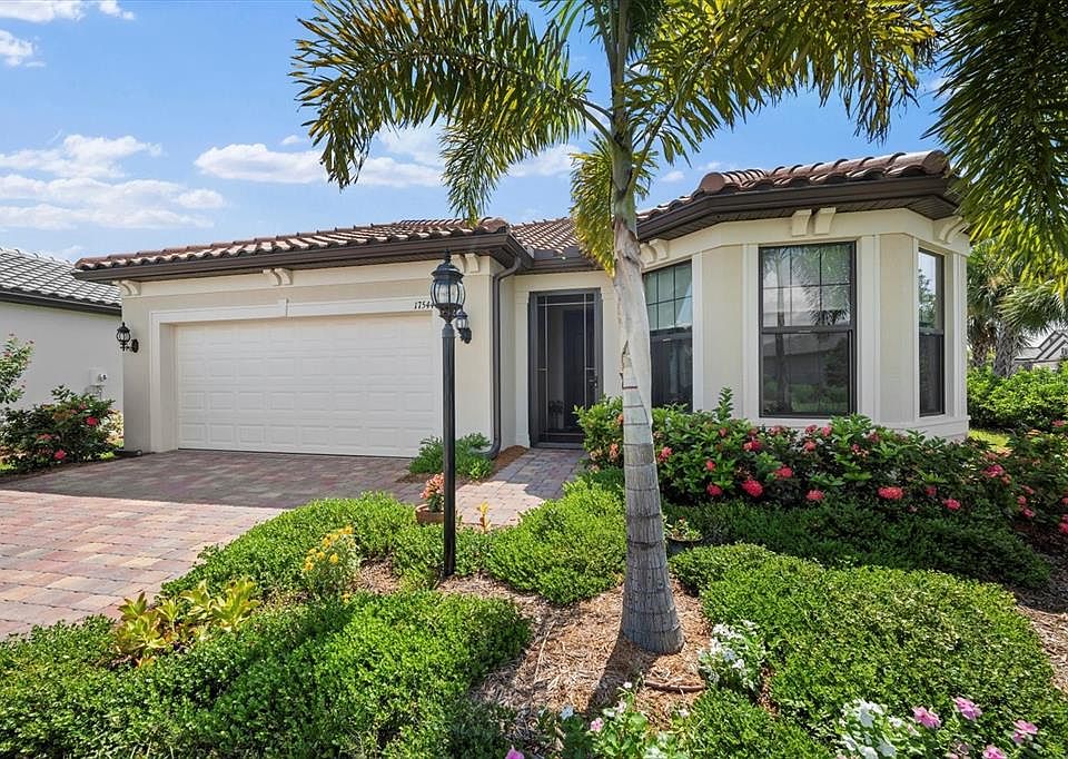 Come see this stunning move-in ready PROSPERITY MODEL! Discover this exquisite home nestled on a corner lot within Del Webb, the esteemed #1 55+ community situated in Lakewood Ranch, the nation’s premier residential development. Spanning 1708 sq ft of luxurious living space, this model offers 2 bedrooms, 2 bathrooms, and a versatile den with french doors, perfect for a home office, gym, craft room, or any purpose that suits your lifestyle. Step onto the screened-in front porch, and you’ll be greeted by the radiant interior featuring 12X24 staggered porcelain tile flooring throughout. The spacious gathering room lends itself effortlessly to entertaining, while the architectural design and efficient use of space showcase the enduring popularity of the PROSPERITY MODEL. Experience the seamless transition from indoor to outdoor living with a screened extended lanai – a space destined to become your haven of relaxation with partial water view. The owner’s suite is generously proportioned and boasts an ensuite with dual sinks, a spacious walk-in shower, ample closet space, and a convenient laundry pass-through to the laundry room. The second bedroom boasting bay windows provides an ideal guest retreat. The heart of the home, the kitchen, fulfills every culinary dream with its 42” cabinets, pull-out drawers, soft-close doors and drawers, and upgraded Kitchen-Aid appliances. Equipped with hurricane impact glass, ceiling fans throughout, and an epoxy garage floor, this home offers both style and practicality. Don’t let this opportunity slip away – schedule your viewing of this charming home before it’s too late. Embrace the prospect of owning this splendid residence, perfectly situated in the Lakewood Ranch Del Webb community, and begin enjoying the vibrant Florida lifestyle that awaits.