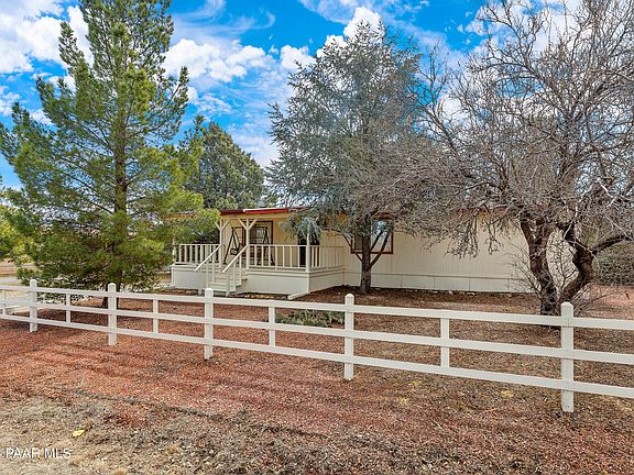 Nice home located in the beautiful neighborhood of Spring Valley, with rural charm and paved roads. Close to Prescott or I-17 for an easy commute to Phoenix or head north to Sedona. This home offers split floorplan, 2 Bedroom/2 Bath plus add-on for your home office or make it 3rd Bedroom. 2 Car Garage plus 2 additional sheds. 1 great for workshop and 1 with a ramp to drive in your toys. Feel the private peaceful setting and savor your coffee enjoying the singing birds on your front or back covered decks. The mature landscaping inspires to venture out to trails nearby.