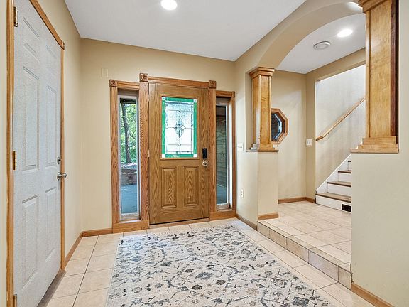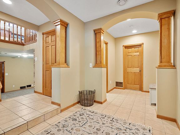 sun-filled rooms with picturesque views of mature trees on your oversized lot located on a quiet wooded cul-de-sac. Generous-sized entry on the main level with a 1/2 bath. Upper level features a well-designed eat-in kitchen complete with stainless steel appliances and a large pantry. The upper level also features a full-sized living room, full bath and 2 bedrooms. Second, upper-level includes the primary bedroom's ensuite with a corner soaking tub and tiled walk-in shower. Lower level walkout opens to an additional oversized entertainment space, 2 additional bedrooms and 1 additional full bath. New flooring throughout the upper level. Lots of storage space available with added storage space in the large, 3-stall garage and backyard shed. Easy access to excellent schools, local parks & walking trails, retail, restaurants and major interstate I35. Don't miss this opportunity.