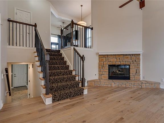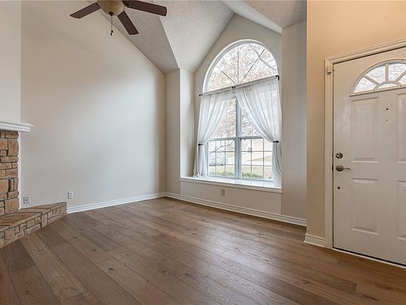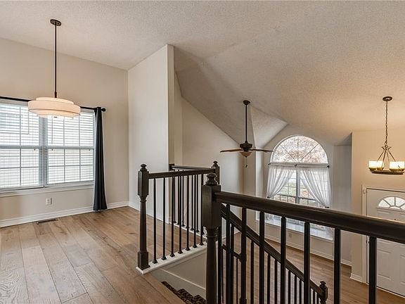 Beautiful home in idea location in Olathe on a cul-de-sac and close proximity to all major highways, shopping, dining and parks in the area! Full exterior paint was completed in 2018, in-ground sprinkler system covers both front and backyard providing a lovely manicured lawn. Interior has a well designed open concept layout with a vaulted great room and high ceilings in the kitchen and dining area. Hardwood floors are featured on first and second levels and brighten the space with the assistance of oversized windows and natural lighting. Primary bedroom is on the second level with large closet and private bath. 2nd & 3rd bedrooms and full bath are located on the 3rd landing. Finished walk-out lower level provides additional living space with newly finished full bath and laundry room with storage. Newly updated sundeck is ideal for outdoor entertaining and watching the sunsets while providing a shaded covered patio on hot summer days!