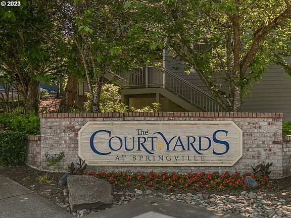 Sought after 2 bedroom gem at The Courtyards is ready to welcome you with open arms. Step inside to the warm ambiance that fills every corner of this inviting home. The main living area is bathed in natural light, creating a comfortable gathering space that is also accessible without the use of stairs. Both bedrooms are generously sized with ensuite bathrooms and plentiful closet space. Full size washer/dryer in unit with wall shelving. Relax outside and take in the greenery or lounge poolside. Detached one-car garage with work bench offers additional storage. Convenience is key and this condo delivers. With its prime location, enjoy easy access to HWY 26, PCC Rock Creek, multiple parks, and all your shopping needs. Come experience the epitome of comfortable and convenient modern living in this highly desired condo. Don't miss out on this incredible opportunity to own a welcoming home or investment property!