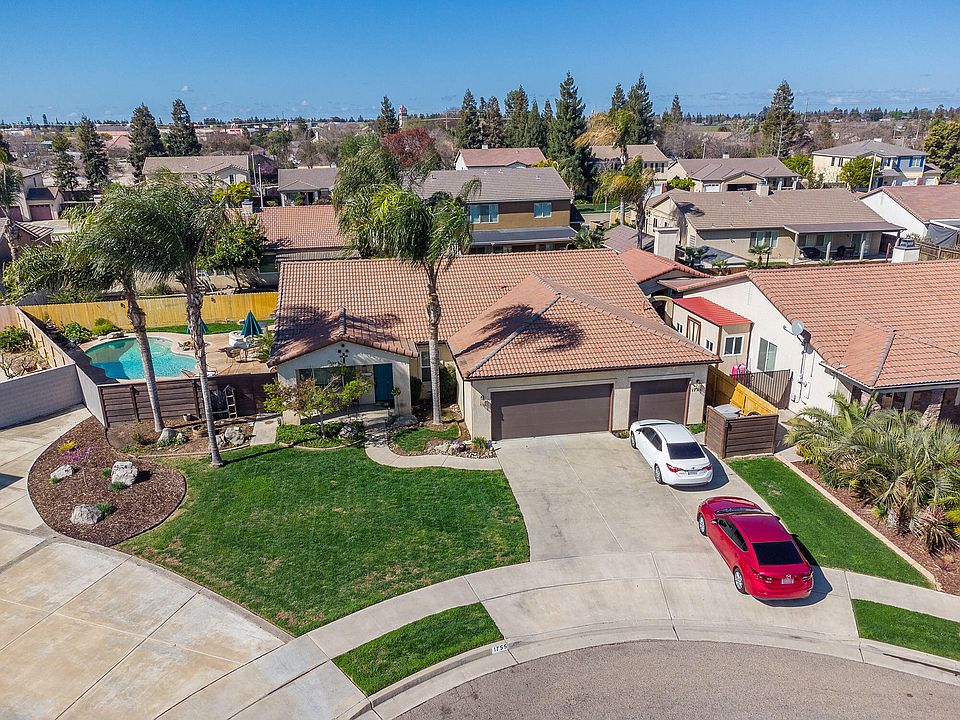 This home features 4 beds, 2 baths, and a 3-car garage. There are tile floors throughout the living spaces and newer carpet in formal living room. Off the formal living room is a great space with built-in desks for the work-from-home life. The open kitchen has tile counter tops, and an adjoining family room with a fireplace. The main bedroom has an attached bathroom with a large walk-in closet. The backyard has stamped concrete patio and a pool to continue the entertaining experience.