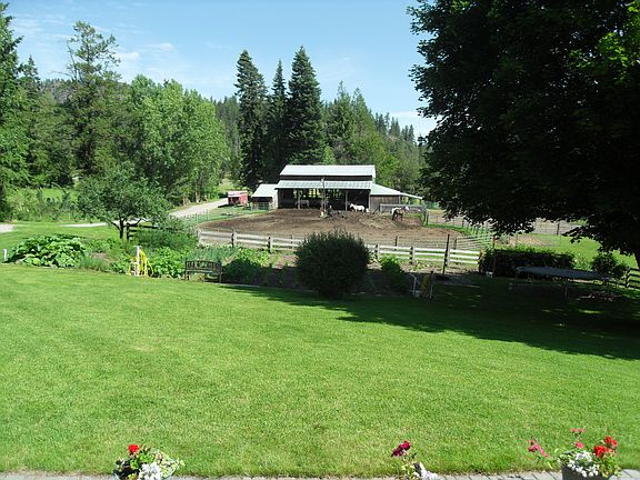 Beautiful 40 acres with year-round creek, barns, round-pen, arena, tack shed, insulated meat room, hay fields, pastures, wooded area. Close to town, lakes, ski resort, hunting, fishing, horseback riding. Hanger/shop, private airstrip. Garden, greenhouse, root cellar, fruit trees. Views must be seen to be appreciated. Home features a large deck, granite counter-tops, vaulted ceilings, open beams, wood cook stove in kitchen, propane, pellet, wood, and electric heat.
