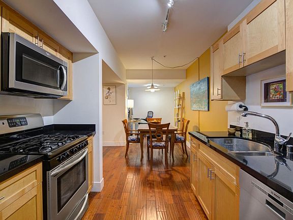 Rare 1br / 1ba live/work condo in the historical Marquee Lofts building. Bathed in natural light, come experience the remarkable peace and quiet of this courtyard-facing unit in an intimate building. Luxury engineered hardwood flooring throughout the home with stainless appliances and custom cabinets and shelving in kitchen. In-unit laundry, walk-in closet, deeded parking & storage, and elevator. HOA includes high speed fiber optic internet, water, gas, & garbage. Located across from the iconic Fox Theatre & around the corner from the 19th St. BART station. Incredible dining, entertainment and shopping options just steps away. Enjoy downtown living and easy strolls to Chinatown or Lake Merritt. Exceptional Walk Score of 100 and Bike Score of 91!
