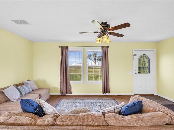 This one story home located approximately 5 miles NE of Urbana, was built in 2014 and is purposefully situated on 1.71 acres to enjoy our gorgeous prairie sunsets. The home has 1728 SF, 4 bedrooms, 2 full baths and 2C detached garage. The split floor plan finds the primary suite with full attached bath and 3 remaining bedrooms divided by the open flow of the main living area. The kitchen is the heart of this home featuring plentiful cabinetry, walk-in corner pantry, good counter space and a generous island with seating plus an adjacent dining space. The handy laundry room is located off the kitchen with extra storage area and access to the backyard. Sliding doors off the dining area lead to the newly built deck for enhanced outdoor living and expansive country views. The acreage is basically open yard area at this time with plenty of space to plan your hearts desire. Wonderful possibility to homestead, raise poultry, small animals, gardening, add outbuildings, fruit trees etc..no HOA to cramp your dreams! This home is 2x6 construction with private well, private septic and the water softener system is owned. The interior has been freshly painted, the roof was a tear-off 2021 with a fully transferrable warranty, furnace, AC, water heater 2014. Historically, this parcel was part of a 400 acre farm owned by the Stevens family for 175+ years prior to retirement. George was known as the "Corn King" because the family donated Illini super sweet for the Urbana Sweet Corn Festival for many years. An original corn crib is still located in the SE corner and is part of this parcel. We would love to have you come take a look, you will be glad you did!