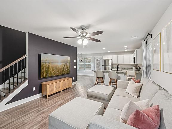 Better than new and move-in ready home. This extremely well-maintained 3-bedroom, 2.5-bath Craftsman-style home built in 2019 offers modern comfort with timeless charm. The open-concept layout features wood-look vinyl flooring, a gourmet kitchen with white cabinetry, granite countertops, stainless steel appliances, and a spacious breakfast bar. Upstairs, the oversized primary suite includes dual closets and a spa-like bath, with laundry conveniently located near all bedrooms. Step outside to a newly landscaped, private fenced backyard with a greenhouse, fire pit, and gated access on both sides ideal for relaxing or entertaining. The home also features a slightly inclined driveway that adds character while offering extra privacy from the street. Optional HOA for POOL/Club House access. Renal friendly and just 3 minutes from Costco, Bald Ridge Marina, and Hwy 400, with easy access to Lake Lanier from the community to enjoy kayaking or paddle boarding. Zoned for highly sought-after, top-rated Forsyth County schools. Don’t miss the opportunity to make this your forever home, schedule your showing today and come experience this stunning property in person!
