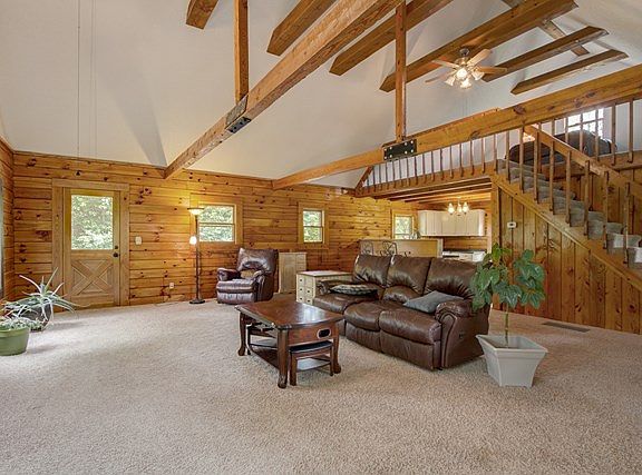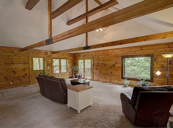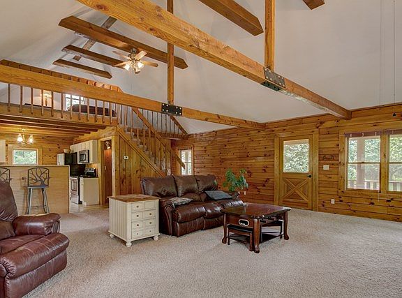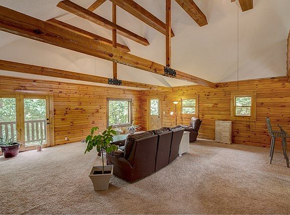 Nice 2 bedroom 2 bath log cabin located just a mile from the Great Smokys Nat'l Park! Main level features massive living room with vaulted ceiling, new kitchen including cabinets, counter tops and stainless appliances, full bath and laundry. Covered front porch and side deck accessible from main level. Upstairs has an open loft overlooking the living room. Basement features large den/game room and two bedrooms plus bath with dual vanity. Lower level has a covered porch that is already wired for a hot-tub. Nice yard, garden area, circular driveway, carport, and large storage building for your toys! Would be a great vacation rental!