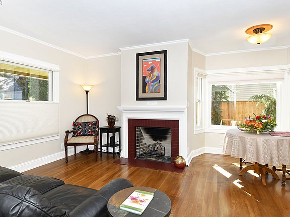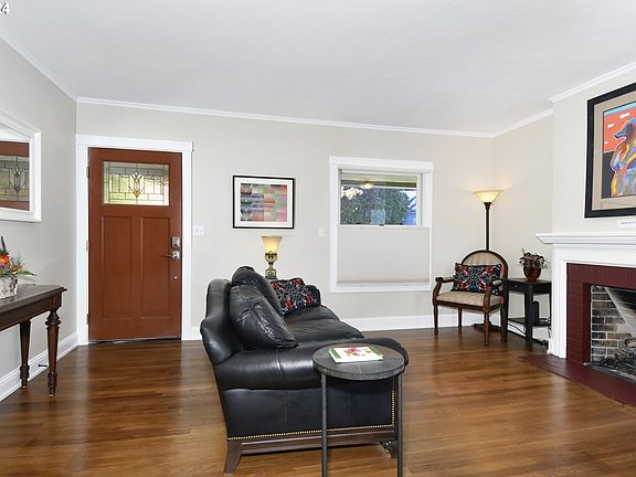 Welcome Home! This spacious mid-century beauty in the desirable Woodland Park neighborhood is the the perfect Portland Bungalow with period charm plus elevated features. Quality Andersen Windows fill the space with ample natural light and the gleaming hardwood floors invite you in. The custom top-down-bottom-up blinds provide that perfect mix of natural light, diffused light and privacy in every room. Enjoy the comfort of Central A/C, Gas Heat and a cozy Gas Fireplace. A sunny dining nook is the perfect spot to enjoy the morning sun. The updated kitchen with SS appliances and Bosch Gas Range, opens to the outdoor covered deck and rear yard oasis making it perfect for entertaining inside and out. The stamped concrete driveway provides additional options for parking cars, RV, toys in front of or behind the double gates to the drive through garage. Relax on the large patio or around the fire pit surrounded by lush plantings, a meandering path and even a garden shed, all fully cedar fenced. Don't miss the EV charging station! This home is so warm and inviting, you will never want to leave. Exceptional Home Energy Score of 8! New Energy Star Rated R60 attic insulation. Fantastic Bike Score of 89 and Walkscore of 67 make this the perfect location to walk or bike to nearby restaurants, shopping, healthcare, etc, very convenient to the highway in either direction and all tucked into a quiet established neighborhood. Make this beauty yours today! [Home Energy Score = 8. HES Report at https://rpt.greenbuildingregistry.com/hes/OR10097307]