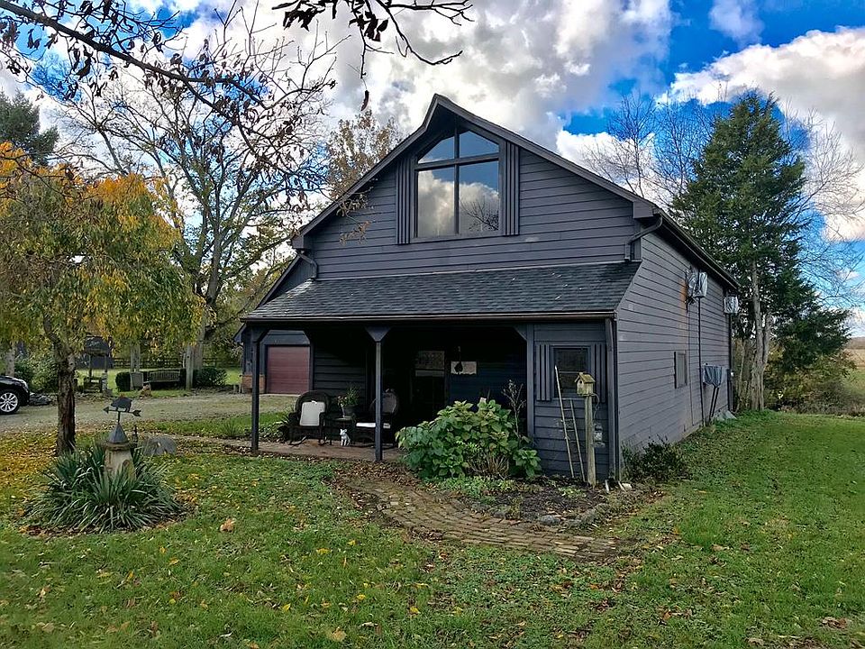 Unique opportunity to own a one of a kind home built around a log barn! Conveniently located between Chillicothe and Circleville in Zane Trace School district. Open floor plan is very inviting, lending to a primitive style of decorating with the log beams on the walls and ceilings. Foyer is open to cathedral ceiling. Wood burning stove for additional heat source. Small mud room could be used for an office. Primitive style kitchen cabinetry includes a large built in china hutch and pantry for more storage. Built in bench adds additional seating in kitchen. There are front and back stairs to upstairs bedrooms and bath, large open loft bedroom could be split into two for more bedrooms! Two story garage has a ton of storage upstairs with a 10x24 partially covered deck attached onto a 24x24 open deck. Cute 12x12 "she" shed, 10x16 wood shed and 18x36 barn situated on 1.95 acres with a stream behind. Ross co. water recently installed.