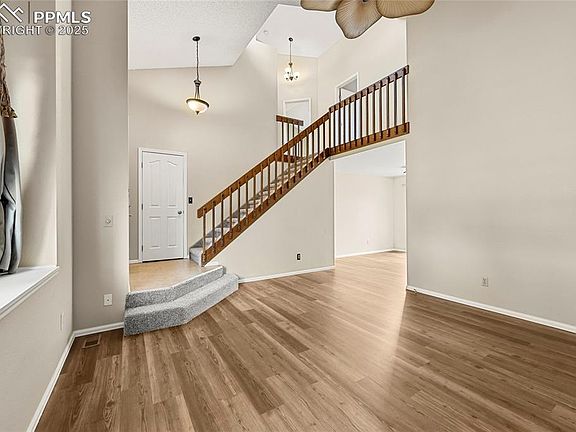 Welcome to this super inviting 2-story home with new paint and fresh new flooring throughout and an open floor plan that makes everyday living easy and comfortable. Whether you're hosting friends or just hanging out, the spacious layout gives you room to relax and make it your own. The unifinished basement offers additional room for play space, home gym or additional family room. The fully fenced backyard is perfect for pets or just enjoying beautiful Colorado evenings outdoors. You'll love the location—close to Powers corridor, Schriever Space Force Base, schools, Eastridge dog park, and even Cherokee Ridge golf course for your weekend round. This home has everything you need to get started! It’s a great find for first-time homeowners, plenty of opportunity to make it your own—don’t miss out!