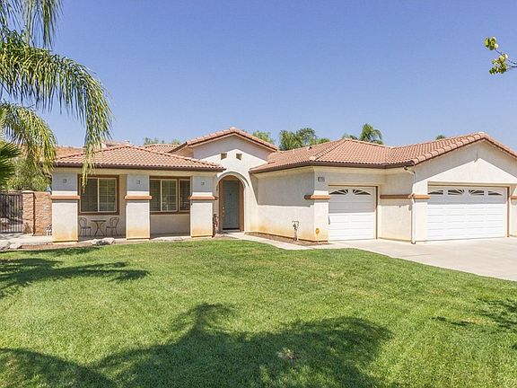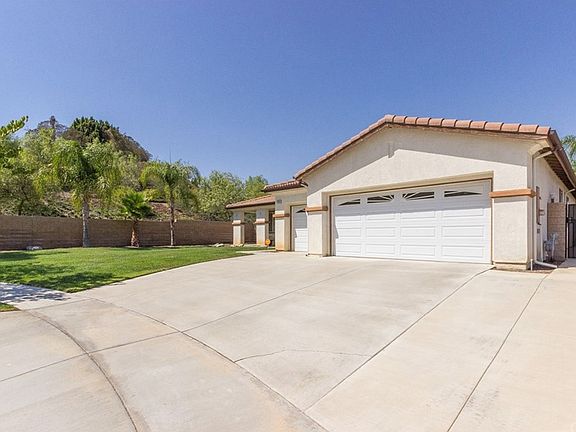 This charming single story home has LOCATION! Within the Santiago High School boundaries and located at the end of a cul de sac street on a pool sized lot that is 10,980 sqft. This bright and open floor plan will dazzle the senses and you'll feel right at home the moment you walk through the front door. Gorgeous dark engineered wood floors, plantation shutters, window blinds, upgraded baseboards all through out! Ample family room/great room perfect for entertaining guests and they will admire the gorgeous custom fire place. The kitchen is equally ample with a central kitchen island with sink and breakfast counter. The master bedroom is stunning with it's vaulted ceilings and appealing decor as well as it's walk in closet. The back yard is very private and surrounded by a block wall, perfect for the kids to run around in rather than playing video games indoors all day!