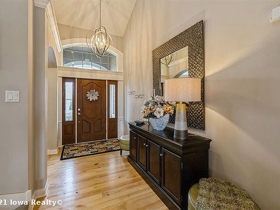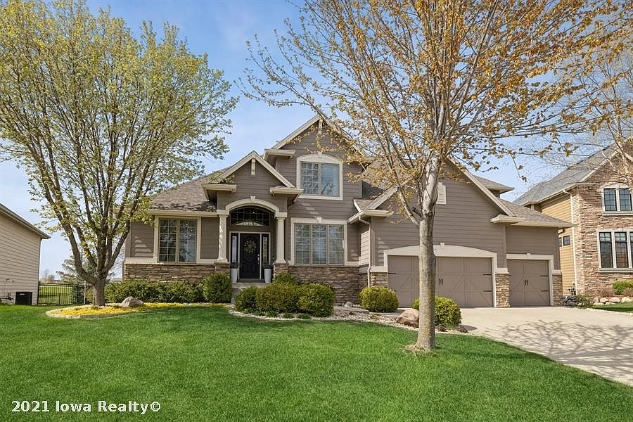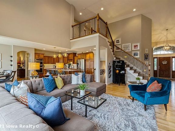Absolutely stunning well cared for one and half story nestled in coveted Waukee baking to Ridge Point park This gorgeous home features a soaring two story entry, gourmet kitchen with tons of cabinets and high end appliances. First floor family room boasts vaulted ceilings, gas fireplace and beautiful hardwood floors that round out most of the main level. There is a front flex room, formal dining or sitting room, plus office nook and a huge laundry room/drop zone The master en suite is spa like with the two-sided fireplace, updated bath with heated floors, zero entry tile shower and custom pull out shelving in the large master closet. Second story includes 3 spacious bedrooms and two full baths, plus additional office area/nook. Get ready to entertain or relax in the amazing walkout lower level with full wet bar, movie area, sitting area and gaming area/tv nook Don't miss this spectacular home with the amazing private view of the backyard, basketball court, southern exposure and so much more