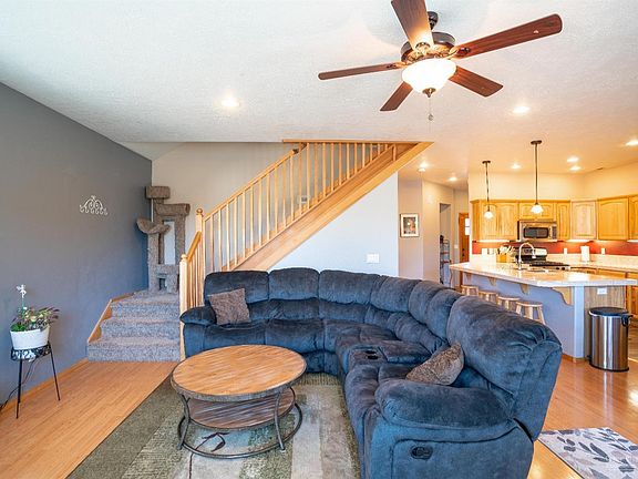 Charming 2 story home on a culdesac in desirable neighborhood! 5 Bd, 3 Full Baths with master on the main floor, great room off the kitchen, gas fireplace in the living room and many more upgrades. Tile kitchen and bathroom counters, new flooring, 2 bedrooms with Jack and Jill bathroom upstairs. Central Air, private fenced backyard with deck and mature trees, as well as a 12 x 12 shed. Great location only 1 block to the Dry Canyon access!