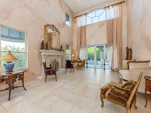 An elegant home with newer roof set in the unique gated community of Boca East Estates with a low HOA.You enter through a grand foyer with soaring ceilings into a formal sitting room and then into the dining area. The Dixie Grand is the largest model in the development with 5 bedrooms and 4 bathrooms, one bedroom and bathroom on the ground floor. A beautiful large kitchen with eating area opens into a family room overlooking pool and garden. Upstairs is a stunning master bedroom with sitting area ensuite bathroom, a working fireplace and 2 large walk in closets, another large bedroom, with ensuite and a further 2 bedrooms with shared bathroom.Across from the development is El Rio park with water access, bike and walking trails, tennis pickle ball, volleyball,basketball and playground 3 chandeliers are excluded from listing and the terracotta garden sulpture