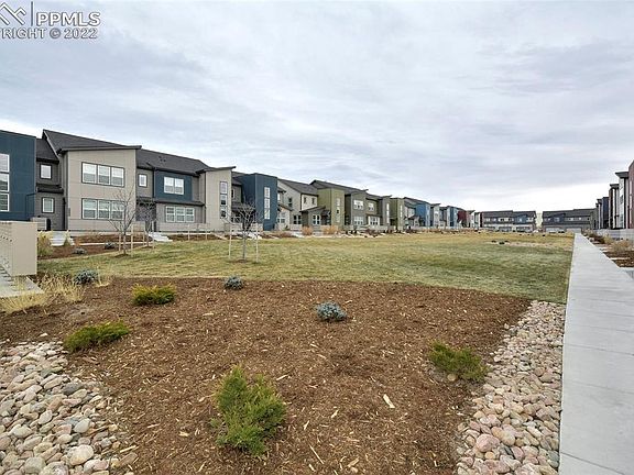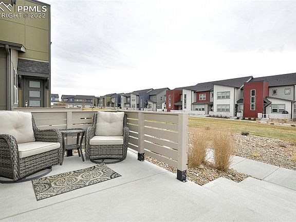 Immaculate, Low Maintenance Living at it's best! The Everett offers a spacious open floor plan in the very desirable Interquest corridor! Great shopping right down the road at the Shops at Briargate, new restaurants, minutes to Pikes Peak Community College. It is also near The Air Force Academy and UCCS. There are countless recreational activities, dining, entertainment and so close to jump on I-25 to get to Castle/Rock or Denver or even our growing Downtown scene in Colorado Springs! This home offers a finished 2 car garage, 3 bedrooms and 2 1/2 baths - Jack and Jill for secondary bedrooms, large kitchen with island, stainless steel appliances with a gas range, granite countertops, luxury vinyl flooring on the main level, Tech Center Area on second floor with great light and built in desk office area, neutral colors, Master suite with walk in closet, dual sinks in master bath and walk in shower. This light & bright end unit is the largest floorpan offered in the community and is conveniently located to the mailboxes and guest parking as well as the large grassy open space outside the front door!