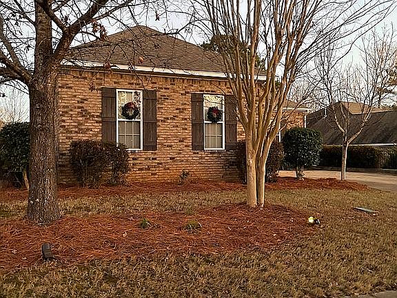 Charming all brick home all on 1 level with attractive cedar beams, rail fence, shutters, & brick paver steps. Outdoor living & entertaining found in front porch sitting area (~61 sf), fabulous screened porch (~187 sf) with tile floor & fan, stained deck (~69 sf) as well as painted deck steps lead to landing & covered patio with stone floor, built in benches & great view of sunrise(~187 sf). Inviting foyer features wood floors & chandelier. Dining room has double tray ceiling, wood floors & chandelier. Great room has wood floors, gas logs with beautiful mantle & 10 ft ceilings. Kitchen offers granite counter-tops, stainless steel appliances, graphite sink, tile, gas cook-top, under-cabinet lighting, eat-at bar and beautiful cherry cabinets. Breakfast area with large picturesque windows. Tray ceiling in master bedroom with his & hers closets. Master bath features double vanity, jacuzzi, tile shower & linen closet. Split plan with 2 bedrooms on each side. Bedroom 2 has private bath. Bedroom 3 & 4 share hall bath. Spacious laundry room with closet. Attached double garage has attic space as well as extra storage room, shelving & exterior door. Additional features include wood blinds, upgraded light fixtures, fans, brushed nickel plumbing fixtures, window tinting, added outlets, added faucet & gutters. Fantastic neighborhood zoned for Auburn’s best schools. Two neighborhood pools with clubhouse, sidewalks, lake & playground. Homeowners association is $450 a year.