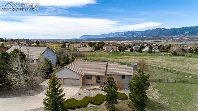 ~Absolutely Stunning Custom Home in Woodmoor Backing To Green Space with Sweeping Views of Pikes Peak and Mt Herman~This Walk Out Rancher offers all the amenities for indoor/outdoor living~Top Quality 2X6 Construction, Beautiful Brick and Hardie Plank Exterior, Solid 6 panel doors, Oak and Cherrywood Floors, Tile Roof, Plus much more~True Main Level Living Inc. Laundry~Master Suite has a Walk In Closet with Barn Door, Spacious Bathroom, Oversized Spa Shower has Body Jets and Double Vanity~Main Level Office too! Exciting News of The Walter's Open Space AKA South Woodmoor Preserve, Located Behind This Home! Closing on this project is coming soon! This will be approximately 50-60 acres to in perpetuity. Along with a gravel graded trail. No one will be building behind you! Options for buying into the project for home owners is available to extend your space. Home was remodeled and updated in 2012, including professional addition. Enjoy Colorado Outdoor living on The Trex Deck Facing Gorgeous Pikes Peak and Wide Span of Front Range Views or Relax On The Huge (21 X 17) Patio Off The Heated Sunroom~The Lower Level offers 3 Bedrooms and 2 full Bathrooms, One being an En Suite Bedroom. Exquisite Cherrywood Floors cover the Enormous Family Room (33 X 21) leading to memories made by the custom fireplace, game area & perfect wet bar! Need more space? Step out into the heated sunroom for four seasons Enjoyment! This home offers absolute quality of construction and options through out. Come make this your Colorado Dream Home!