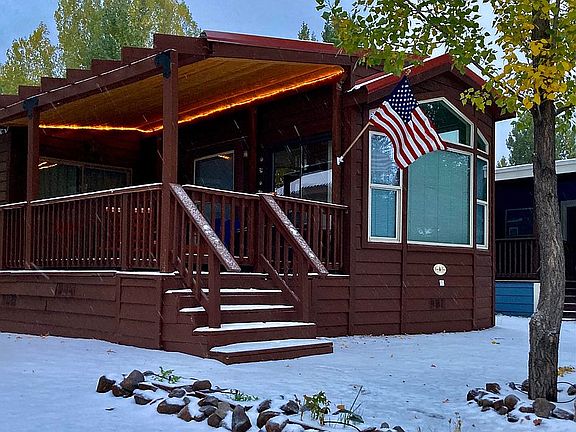 A fantastic value at $89,000, very affordable mountain living close to Flagstaff! Escape the heat and enjoy the cool mountain weather in this two-bedroom, one bath park model in the Munds Park RV Resort! Very well maintained and cared for unit that is clean and comfortable. Large covered deck for relaxing with family and friends. The lot is on a street with large mature trees that offer plenty of shade as well as beautiful colors in the fall. It is a single level unit with high vaulted ceilings throughout, and many windows for natural lighting. The unit backs to a green belt for more distance between you and neighbors to rear for more privacy. This is one of the rare units in the park with a metal roof which offers better protection from the snow and rain. There is room to park side by side in front of the unit, rather than having to tandem park typical of other lots in the park. This unit is in Phase 2 of the park which has the cheapest lot rent and NO monthly sewer fee unlike Phases 3 and 4. Enjoy the park amenities such as the pool, hot tub, community gas grill, and weight room. Comes turn key with everything you need to immediately move in, furniture, tv’s, dishes, cook ware etc., or we will remove unwanted items if desired. The park is open April 1st through October 31st of each year. The monthly lot rent is $806 a month for the months that the park is open. (You do NOT pay rent the months the park is closed!) That fee includes water, trash, sewer, park internet, and the amenities. Short drives to Sedona, Oak Creek Canyon and Flagstaff for your daytime adventures.