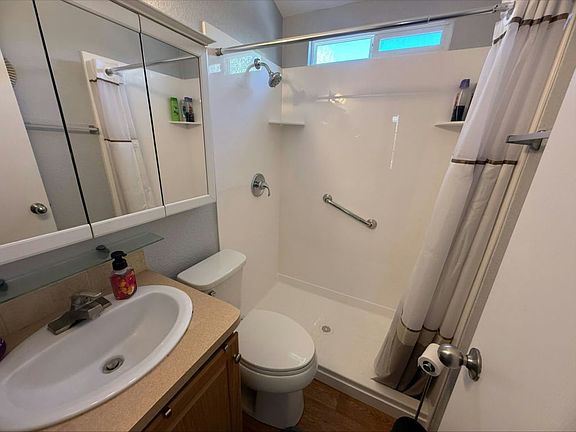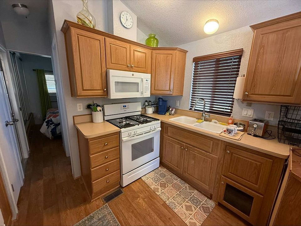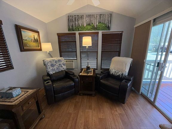 This charming park model home boasts character with a spacious living room and huge covered porch. Fully furnished and move in ready! Nestled in a fun, family friendly park with great amenities for everyone to enjoy. This is the perfect getaway to enjoy cooler weather and fresh mountain air. Features a covered carport, cozy living space, and everything you need to start making memories!
