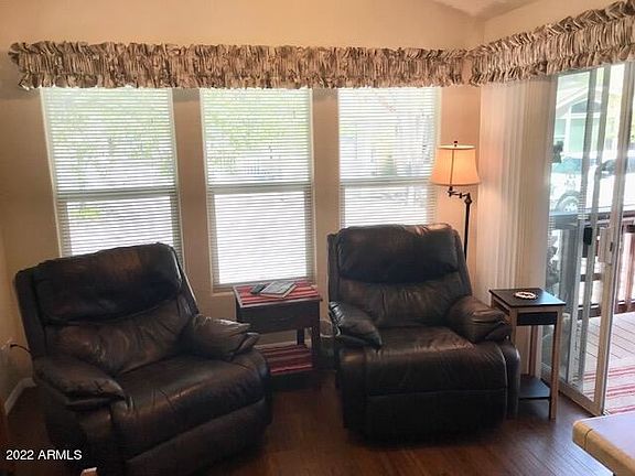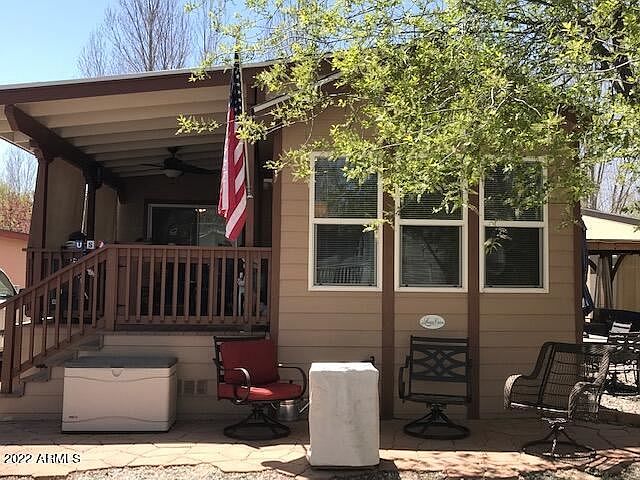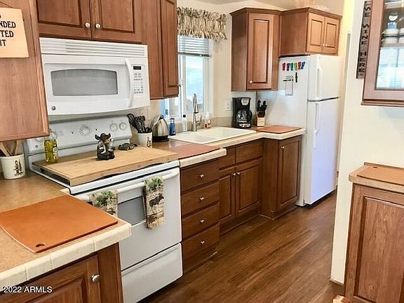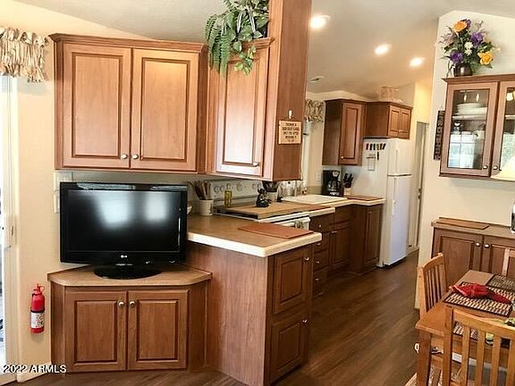 Charming home in the cool pines of Munds Park! Lot 305, Phase 3. in the Munds Park RV Resort. Escape the heat and enjoy this pristine 1 bedroom home with an extra room addition(10x12) that could be used as a bedroom (fully vented) and 1 full bath. Original owner! Covered deck with patio shade screens, new roof (2021), vaulted ceiling, new kitchen sink and faucet, GE newer appliances, 2 ton heat pump, air conditioner ,new shower door, new toilet, new laminate wood flooring, ceiling fans throughout, recessed lighting, new CAT-5 wiring front to back, new interior and exterior paint. House comes fully furnished including space heaters and deck cooler. Extra room has double futon and queen blow up mattress. Owners took excellent care of this amazing home. The park is under new ownership
