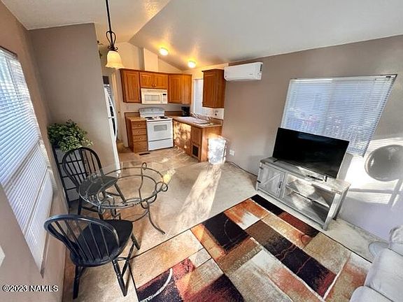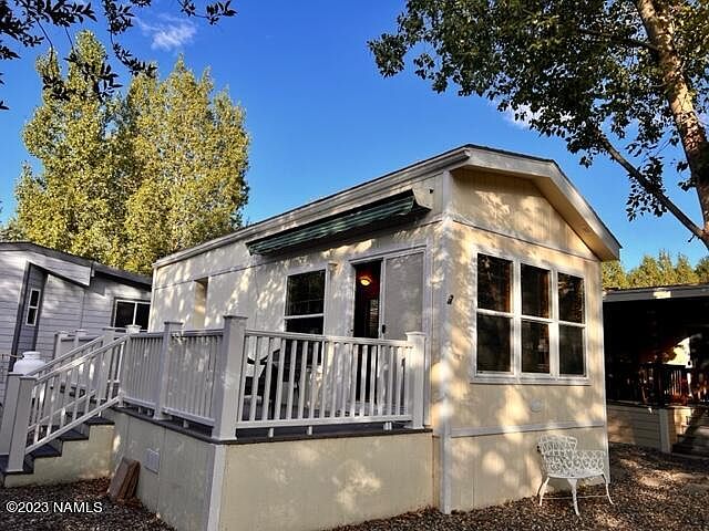 You can have a home in the cool pines of Munds Park at this price! Cute 1 bedroom , 1 bath home, with large deck and has heat and air. Light and bright, clean and nicely decorated. Upgraded bathroom! Don't miss this great, fully furnished home at this price! LAND LEASE is from April 1st through Oct. 31. SEASONAL use only! No rentals. It is walking distance to the well-known Pinewood Country Club and is close to the national forest, lake, hiking, biking trails, utv trails, park, restaurants, convenient store and more! Community pool, laundry, sewer, water and trash included. Munds Park is only 17 miles south of Flagstaff and only a 2 hour drive from Phoenix to escape the heat! Come see your new home in our neck of the woods!