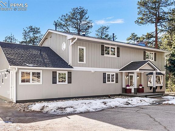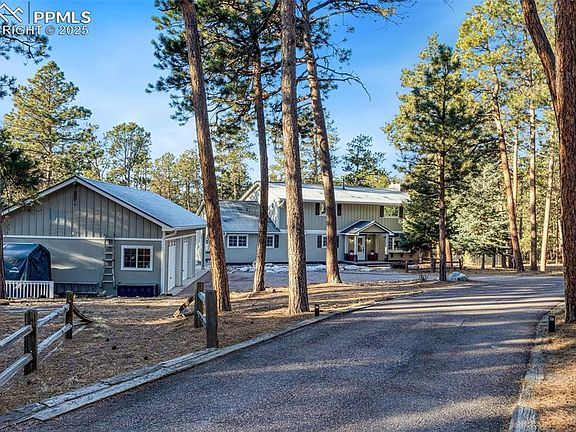 Serene Private Retreat in the Heart of Monument! Tucked away on 2.5+ acres of pristine, tree-lined land, this breathtaking property offers the perfect balance of peaceful seclusion and convenient accessibility—just minutes from town! This home is designed for versatile living, featuring a spacious second master suite on the main level, making it ideal for guests or multi-generational living. Inside, the gourmet kitchen is a chef’s dream, boasting high-end appliances, stunning granite slab countertops, and custom-built cabinetry with carefully designed built-ins. The warm and inviting living room showcases an elegant wood-burning fireplace, framed by rich wood cabinetry, adding to the home’s cozy country cottage charm. Multiple walk-outs, including from the main-level master, living room, upper loft, and upper master suite, lead to a gorgeous two-tiered wood deck overlooking the expansive, fully fenced backyard. Mature trees create a picturesque outdoor oasis—perfect for relaxation or entertaining. Meticulously maintained, features a brand new roof (2025), new water heater (2024), like-new septic system, furnace and electrical (2020). Oversized heated garage with workshop, ensuring ample storage and organization. Zoned for horses and fully fenced! Gated entry, situated on a quiet street, yet moments from everything Monument has to offer, this home delivers the perfect blend of tranquility and convenience. Don’t miss your chance to own this stunning retreat—schedule your private tour today!