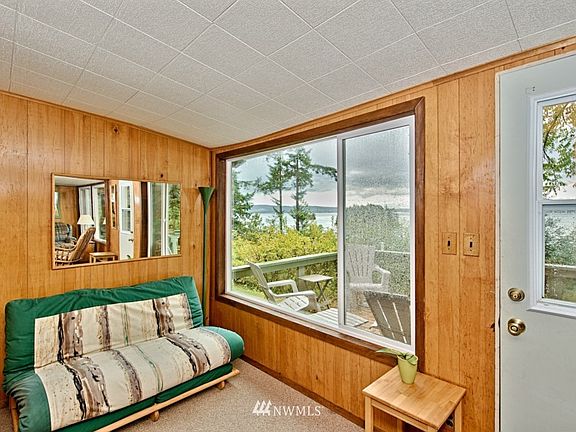 Adorable cottage on 50 foot of medium bank waterfront with stairs leading to the beach. This charming cottage would be the perfect vacation get-a-way or small live in. Home features 1 bedroom and an extra sleeping room for those extra guests. Large deck perfect for BBQs and gatherings. Home overlooks the peaceful waters of Skagit Bay and several island. Leased Land.