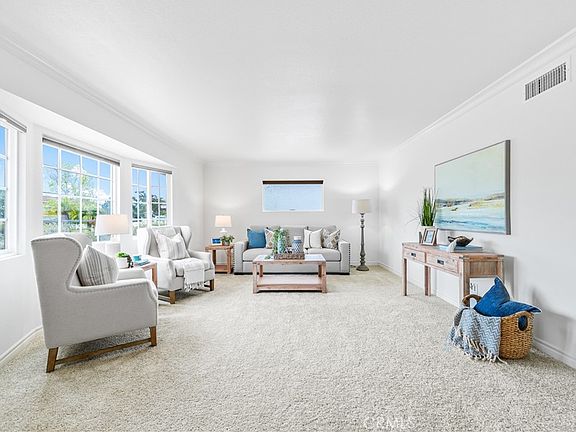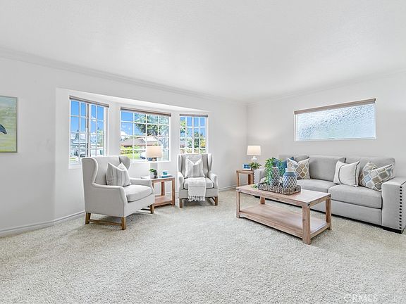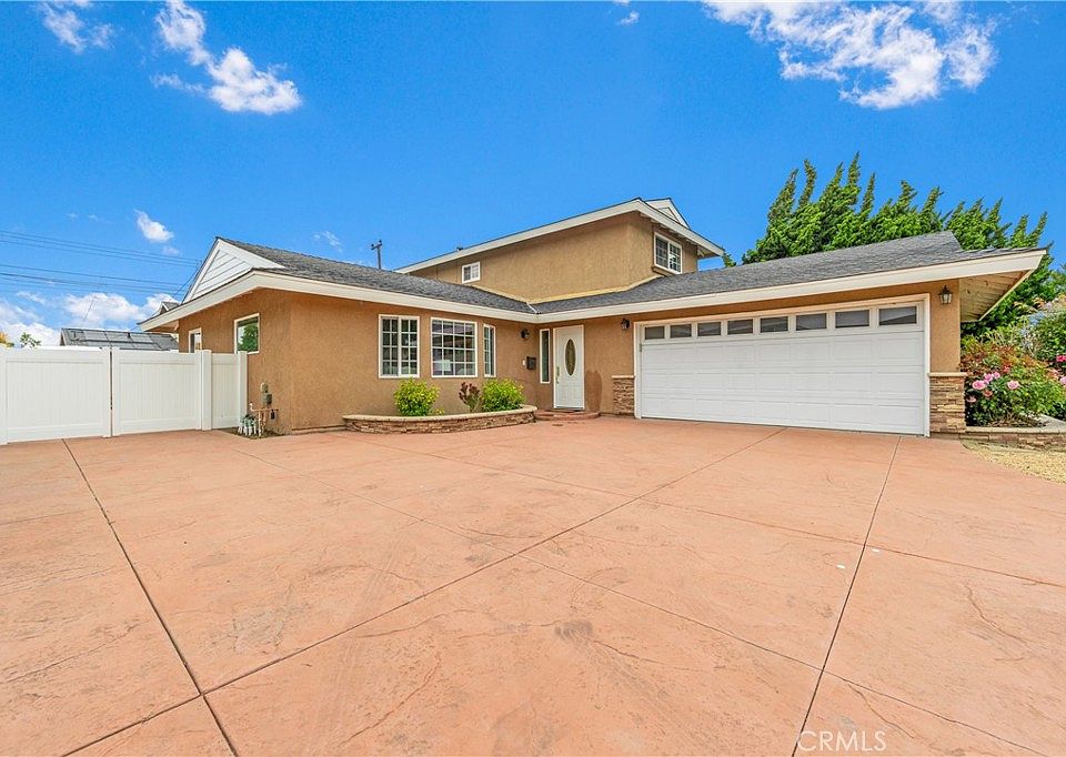 Imagine coming home from a long day and as you enter the home through the attached garage you are immediately transported from the stresses of the day into your own sanctuary of peace. Do you want to immediately enter the newly carpeted living room and plop on the couch and read a book, watch a favorite show or maybe listen to some of your favorite music while quietly relaxing, or possibly walk down the nice vinyl flooring to the remodeled kitchen to grab an afternoon snack and a nice cold drink. Whatever your choice, rest and relaxation will not be far behind with a Primary bedroom on the main floor along with a 2nd bedroom that can easily be used as an office or home gym and an adjoining remodeled bathroom with a shower and modern vanity. Upstairs you will find a 3rd bedroom with views of the spacious backyard for entertaining and enjoyment with a covered patio, plenty of grass and planter beds and a large concrete area with parking for an RV, trailer boat, etc. A 4th bedroom with views of the front yard and a full bathroom with tub can also be found upstairs. In addition to all this, you will be next to high ranked schools, a fabulous park, 2 golf courses and close proximity to the freeways, shopping centers, beaches and award winning restaurants and a great neighborhood!!! This one won't last very long, come check it out quickly!