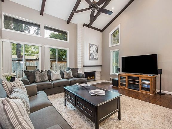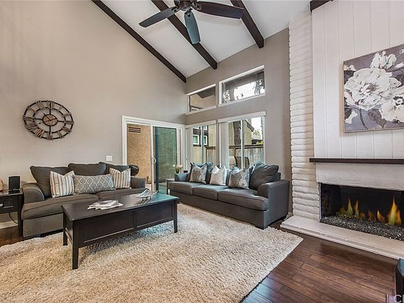 Hard to find, beautifully remodeled 4 bedroom 3 bathroom home in the highly desirable Cerro Verde community! Enter through gated private patio space to the front door. Inside, a dining room and downstairs bedroom and full bathroom welcome you. Vaulted ceilings and recessed lighting in the living room make this already spacious town home feel even more open and inviting! The kitchen, fully remodeled in 2017, boasts amazing detail and high end appliances featuring Thor all mechanical 6 burner professional stove/oven, beautiful glass back splash, custom drawer microwave, pot filler, Franke farmhouse style sink with touch faucet, and granite counter tops. Porcelain tile in kitchen and bathrooms and laminate wood look flooring throughout. 3 bedrooms and 2 bathrooms upstairs including the master bedroom with 2 closets, ceiling fan, and wonderfully remodeled walk in shower. One of the upstairs bedrooms also has a private balcony. 2 Car large garage can fit a pickup truck sized vehicle, and also contains the washer and dryer hookups, a 5 year old water heater, and Auqa Rex water softener. The location of this unit is also highly desirable within the community as you are just steps from the pool. Unit is also zoned for Linda Vista Elementary, Yorba Linda Middle, and Esperanza High School - all top rated schools!
