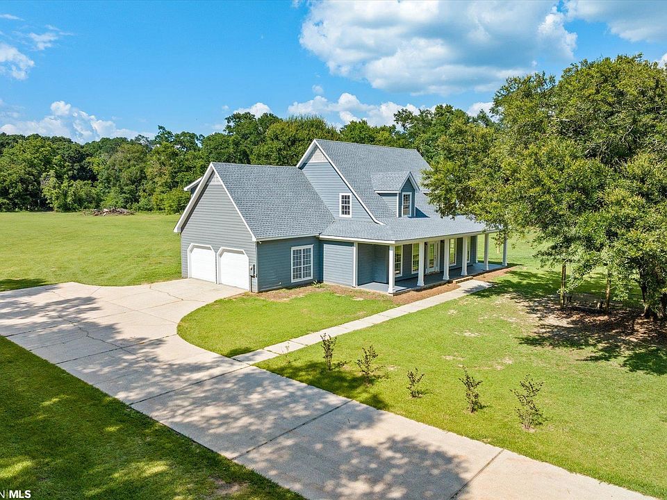 Are you looking for more space inside and out? This home offers both. Situated on approximately 2.7 acres, the house is 5 bedrooms and 2.5 baths. The primary bedroom, ensuite, and half bath are located downstairs while the other four bedrooms and additional bathroom are upstairs. The downstairs family room and kitchen are freshly painted with new flooring installed. The exterior was also recently painted and a new roof was installed. But best of all, the beautiful yard provides the perfect place to spread out and enjoy some extra space. And all of this is located just minutes from Highway 59, the Baldwin Beach Express, and the Interstate 10. Property being sold AS IS, WHERE IS.