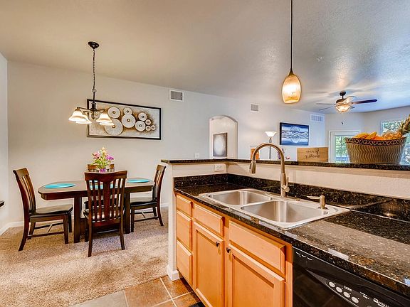Exceptional 2 bedroom, 2 full bath condo in fabulous Prairie Walk. Just steps from Cherry Creek trail with access to extensive walking, biking and running trails. This gorgeous condo is beautifully designed & meticulously maintained. Features a spacious family room (gas fireplace & entertainment cove), dining area and kitchen (granite counter), large master bedroom (walk-in closet) & master bath (double sink vanity with granite counter). Another bedroom & a full bath complement the interior. Also features **2 private balconies** (storage area). Great HOA amenities with **community pool, clubhouse & fitness center**. Abundant parking! Just minutes from downtown Parker and its friendly shops, restaurants & recreation. Easy access to E470, I-25 and I-225.