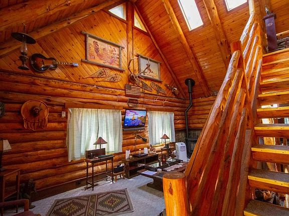 Available October 1st- Gorgeous horse property with 14 acres of riding trails and barn nestled in the pines with a show stopping custom log home. Extra large master bedroom in the loft with a second bedroom downstairs. This dream home has handmade cabinetry, exposed log beams and walls, and wrap around decks to enjoy the peaceful, low maintenance, natural landscaping and mature trees. Enjoy the beautiful picnic area with kids or a small dog. The perimeters has been fully fenced for safety. You'll have plenty of room to store your fishing gear, bikes, and kayaks in the multiple outbuildings that are included. This property will be shown to approved applicants only.