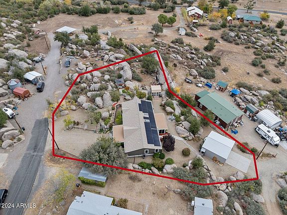 Nestled in Yarnell, AZ, where the mountain air meets desert breeze, this 2015 Cavco 3-bedroom manufactured home offers peaceful living on a quiet cul-de-sac. Sitting on 3 parcels (0.49 acres), this home features a sunroom addition, a covered front deck, and modern amenities like roof-mounted solar and ground A/C. A 576 sq. ft. utility building adds extra space for storage or a workshop. With recent updates and thoughtful maintenance, this home is move-in ready and perfect for those seeking a serene, small-town lifestyle. Experience tranquility in the heart of Boulder Mesa subdivision.