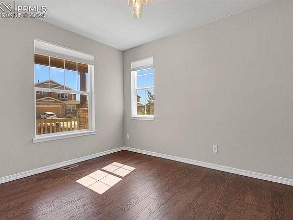 This gorgeous Lake of the Rockies home is waiting for you. Brand new roof in August of 2023! So many upgrades you need to see for yourself! Be sure to ask about a possible assumption! Welcome to the grand foyer with enormous vaulted ceilings wood floors and stylish lighting. The office is open, comfortable and flexible for your needs. The gourmet kitchen with farm sink, double ovens and gas cooktop will delight the chef in you. Lovely quartz countertops flow beautifully across your huge island and into the butlers pantry...behind that door is your dream storage pantry. The custom Sequoia wood mantel sits atop the stone surround, gas fireplace to warm your greatroom. The custom buit-ins make this room truly unique. Peek out the large windows to see the incredible view of the mountains from Cheyenne Mtn to Mt Herman and beyond! The diningroom boasts wood floors and a barn door walkout to your large composite deck with a retractable awning to make dinners with a view possible! Upgraded lighting is throughtout the home, new carpet in the greatroom. Custom mudroom to keep you organized! Upstairs is the Primary suite with custom shower with upgraded showerhead, 2 more good sized bedrooms, a spacious loft, a full bath with separate shower room, and the convenient laundry room that even has a mountain view! Pop on down to the basement to find a spacious familyroom, game space and a bedroom with walk-in closet and 3/4 bath. Don't miss the storge room or under stairs closet! Step out the slider and into your hotub! The fully fenced yard with gas firepit and seating is a great place to spend summer evenings! Just a hop and a skip to Monument Lake where you can take out your included canoe! This perfectly located home is walking distance to downtown Monument where Music in the Park, the Farmers Market and the Art Hop happen all summer long. Don't miss this fantastic opportunity!