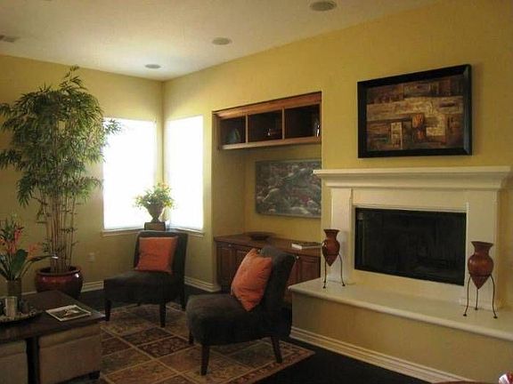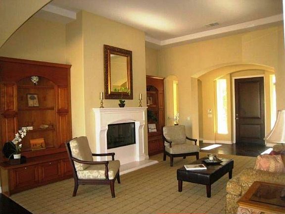 Former model home! Single level executive home with Casita on .95 acre in desired Woodcrest community. Enter courtyard to home that features 4 bedrooms plus a study and 3 1/2 bathrooms. Upgraded features include formal living room with fireplace, recessed lighting, formal dining room and butler's pantry. Extra large family room with 2nd fireplace is open to kitchen which is perfect for entertaining. Living room has Alcove which opens to a covered Loggia with gorgeous backyard views and concrete patio with ceiling fan. Magnificent Chef's Kitchen features granite counters, large gourment prep island, recessed lighting, stainless steel Kenmore Pro appliances and custom cabinets. Master bedroom suite features sitting area/retreat with 3rd fireplace, master bathroom with expansive walk in closet, dual sinks, vanity, romantic soaking jacuzzi tub and large separate shower. Jack and Jill Rooms 2 and 3 share full bathroom with dual sinks. Casita features the 4th bedroom with private full bathroom, 4th fireplace, walk in closet and kitchenette with sink. Study makes for a perfect library and could be a 5th bedroom. Extras include 3 car garage, laundry room with sink and cabinets, low tax area, no HOA, surround sound, crown moulding and wood floors throughout.