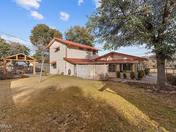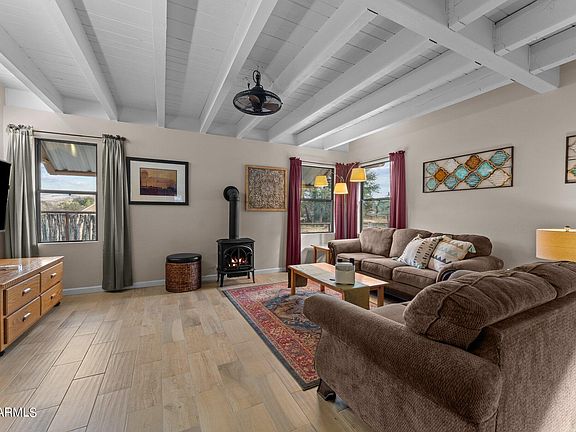 Located in the scenic hills of Yarnell, in the sought-after neighborhood of Glen Ilah, stands a remarkable home. This house is a labor of love, having undergone exceptional renovations and meticulous maintenance. Every square inch of this home reflects the care and attention it has received over the years. As you step inside, you are greeted by delightful wood beams that adorn the living room, adding a touch of rustic elegance. A quaint claw foot tub and a soothing color palette are among the many carefully curated details that make this property unique. The allure extends beyond its interior to the impressive outdoor features. Picture yourself hosting lively barbecues or outdoor parties under the gazebo, an ideal setting for both entertainment and relaxation. Imagine starting your day... with a cup of coffee on the screened-in porch, enveloped by the tranquility of nature, or exploring the surrounding area, absorbing the peacefulness and beauty.