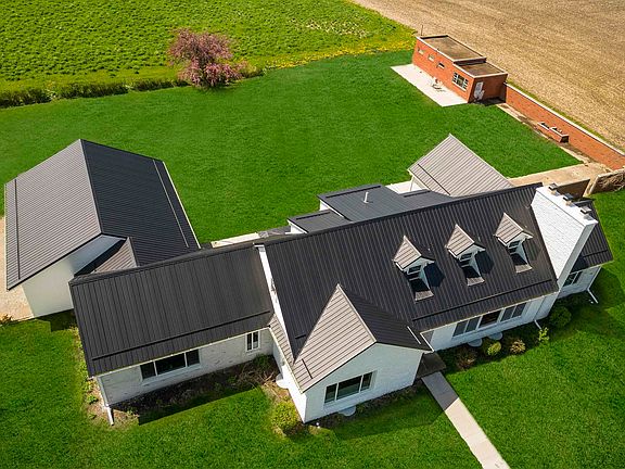 Simply Sensational! This incredible property features a completely renovated home with high-end finishes, two huge outbuildings, and sits on nearly 14 acres of land! Far from ordinary, quality surrounds you at every turn beginning on the exterior, with the stately black metal roof contrasting the snowy white home’s exterior. Stepping inside, you’ll notice the attention to detail as the foyer welcomes you. The grand living room is impressive, with a masonry fireplace and expansive windows allowing tons of natural light to pour in. The living room opens up into the sun-drenched dining room and gourmet kitchen that are ideal for entertaining. The kitchen features custom two-tone cabinetry, a copper farmhouse sink, charcoal stainless appliances, and a huge center island, with storage around all sides, and topped with stunning granite with a unique leather finish. This area wraps around into a coffee station and a long wall of pantry space. Just off of the pantry wall is a gorgeous guest bath with a beautiful custom sink cabinet and tiled shower. On the other side of the home, is the master wing. The huge master bedroom, with dual closets, can fit a king size bed, offers plenty of room for additional furniture, and it provides access to the rear yard through sliding glass doors. The ensuite is incredible! Enjoy a soaker tub bath, and the warmth of your own fireplace! You will also love the tiled shower, make-up area, and dual vanity with copper bowl sinks and custom base cabinet. Completing the main level is an office with built-ins and incredible views of the front and side yards, and a huge mudroom with storage and laundry, providing access to the attached 1384 square foot garage and shop. Upstairs are two very large bedrooms, and a full bath with a tiled shower to share. This incredible home is heated and cooled with a new geothermal system. Heading outside, so much can be done with the multiple acres of land…..horses, mini horses, hobby farm, goats, use as an income producing property, the possibilities are endless. The 60’ x 74’ barn recently housed 4 horses. It has a center concrete floor and opens into a 1 acre, fenced-in dry lot with an adjacent pasture area. The 45’ x 40’ machine shed has a concrete floor and a huge door that fits a combine. This magnificent property, with all of the amenities, is truly an escape from the ordinary! Centrally located between Waterloo and Cedar Rapids, make this property yours today!!