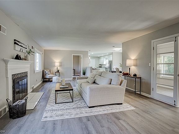 Picturesque setting for this 4 bedroom, 2 bath Ranch sitting on a 2 acre lot in Stow. This home has been meticulously renovated with high quality craftsmanship and high style design. The open large main living area is anchored with a beautiful fireplace, and flooded with so much natural light. Entertain guests and family with this open floor plan living, dining and kitchen. Completely updated kitchen including all new soft close cabinets, quartz counters and stainless steel appliances. A beautiful sunroom allows access to the private lot, great for inside outside living and/or enjoying nature will having your morning coffee, or evening night cap. Split floor plan bedrooms on main floor. 1 bedroom, currently staged as an office is tucked in behind the kitchen, while two nice size bedrooms and full bath finish off the main level. Basement is completely finished including the 4th bedroom (possible master) with its own en suite bathroom. The basement will be perfect for the special getaway