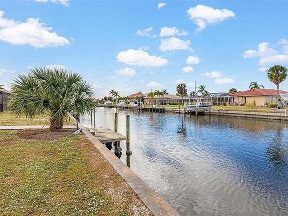 *Some Photos are virtually staged* Set along the scenic waterways of Punta Gorda Isles, this three-bedroom, two-bath waterfront home with a one-car garage delivers classic Florida living with unbeatable boating access. With only one bridge out to the Gulf, the location offers quick and easy trips to Charlotte Harbor and beyond, making time on the water simple and enjoyable. A private dock and seawall sit right in the backyard, creating a front-row seat to peaceful canal views and colorful sunset skies. Inside, nearly 2,100 square feet of living space feels open, bright, and thoughtfully designed. Tile flooring runs throughout the home, adding durability and a clean, cohesive look. The main living and dining areas are spacious and filled with natural light, highlighted by a large picture window that frames the water view. Ceiling fans and recessed lighting add comfort and style while keeping the space light and airy. The kitchen is both functional and inviting, featuring granite countertops, wood cabinetry, stainless steel appliances, and an oversized sink. A breakfast bar with an additional sink offers extra prep space and a casual spot to gather. The kitchen flows seamlessly into the sunroom and Florida room, where floor-to-ceiling windows create a bright setting for everyday living or entertaining with a view. French doors open to the patio area, extending the living space outdoors and making it easy to enjoy the waterfront setting. The primary bedroom includes dual closets and a relaxing ensuite bath with granite countertops, a rain shower head, and a skylight that brings in soft natural light. The second bathroom offers granite countertops and a shower-tub combination with jets and convenient Jack-and-Jill access. Additional features include an inside laundry room, a large storage room for added organization, and flexible spaces that can adapt to a variety of needs. The home is located close to Gilchrist Park, known for its pet-friendly paths, waterfront views, and green spaces. Nearby amenities include dining favorites like Lashley’s, along with community features such as a dog park, playground, and tennis and pickleball courts. With prime waterfront access, a private dock, and a location in the heart of Punta Gorda Isles, this home brings together comfort, convenience, and the best of Southwest Florida coastal living.